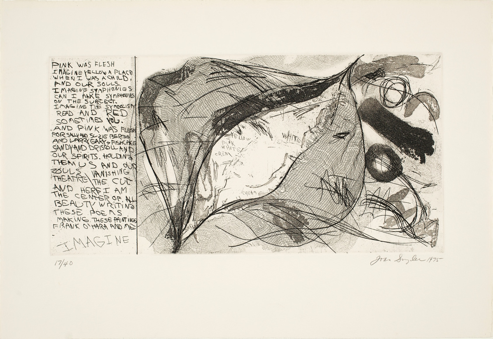 Born in Highland Park, NJ, Joan Snyder received her A.B. from Douglass College in 1962, and her M.F.A. from Rutgers University in 1966. Snyder has been the recipient of several awards, including a National Endowment for the Arts Fellowship in 1974, a John Simon Guggenheim Memorial Fellowship in 1983, and a MacArthur Fellowship in 2007. Her work is included in many public collections including The Metropolitan Museum of Art, the Museum of Modern Art, The Whitney Museum of American Art, The Jewish Museum, The Guggenheim, The High Museum of Art, The San Francisco Museum of Modern Art, The Art Institute of Chicago and The Phillips Collection. Snyder currently lives in Brooklyn and Woodstock, NY.
