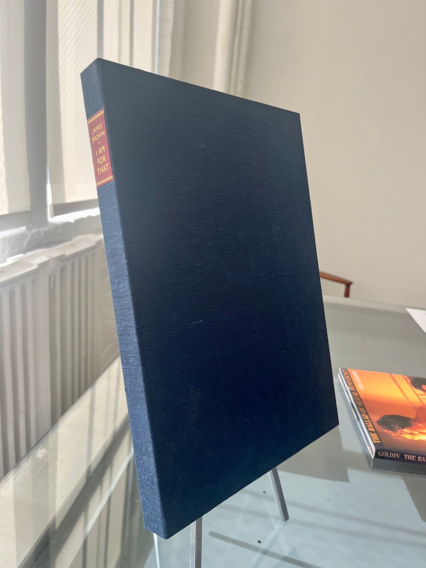 Binding: Three paper folders wrapped in Bedouin silk, in a protective mylar cover, in a new blue cloth folding box, "James Brown" gilt on red leather spine label.