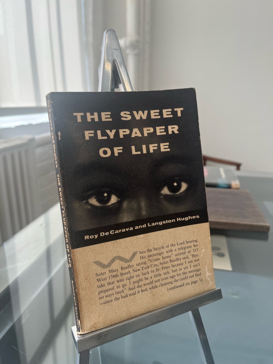 Roy DeCarava had received a Guggenheim Fellowship to photograph life in Harlem in 1953. After being turned down by several publishers, he embarked on a collaboration with the writer Langston Hughes, the leading black writer and a prime mover in the 'Second Harlem Renaissance'. Sweet Flypaper was published not as an out-and-out social documentary book, but with DeCarava's 'real life' images illustrating a fictional text by Hughes about life in Harlem.