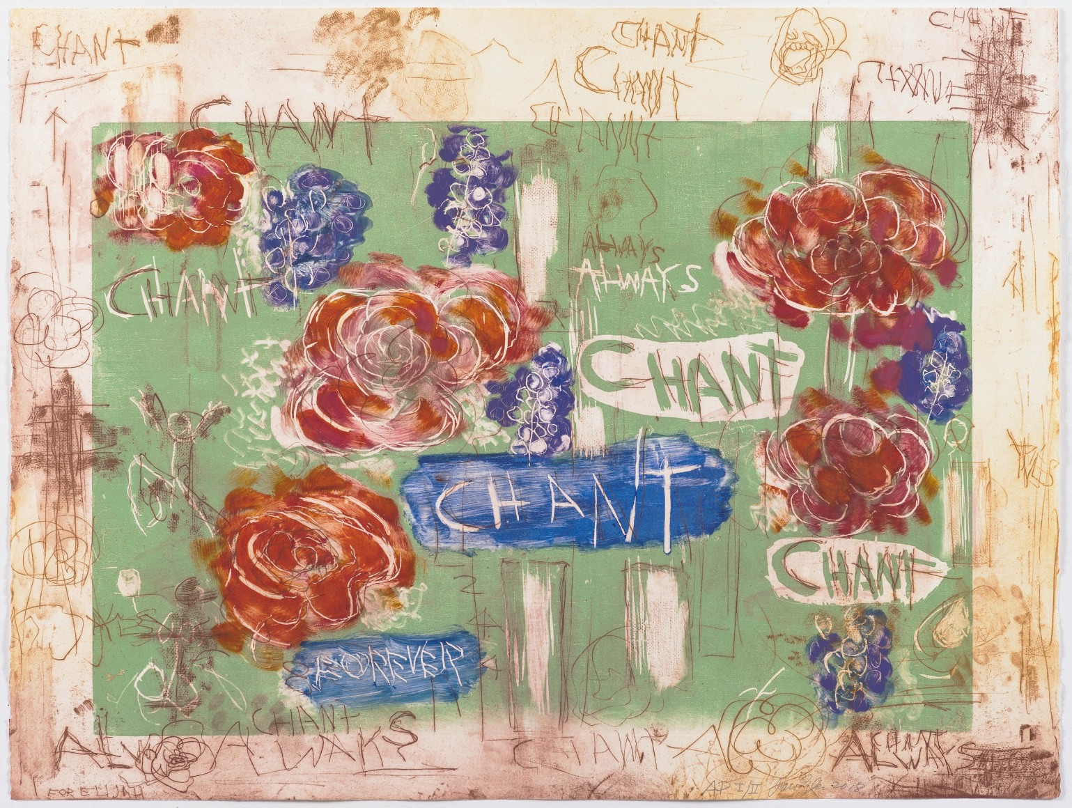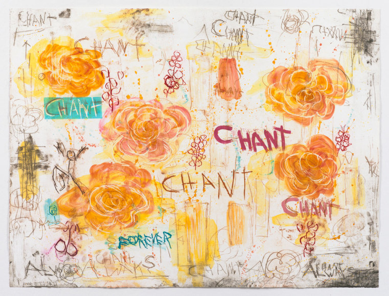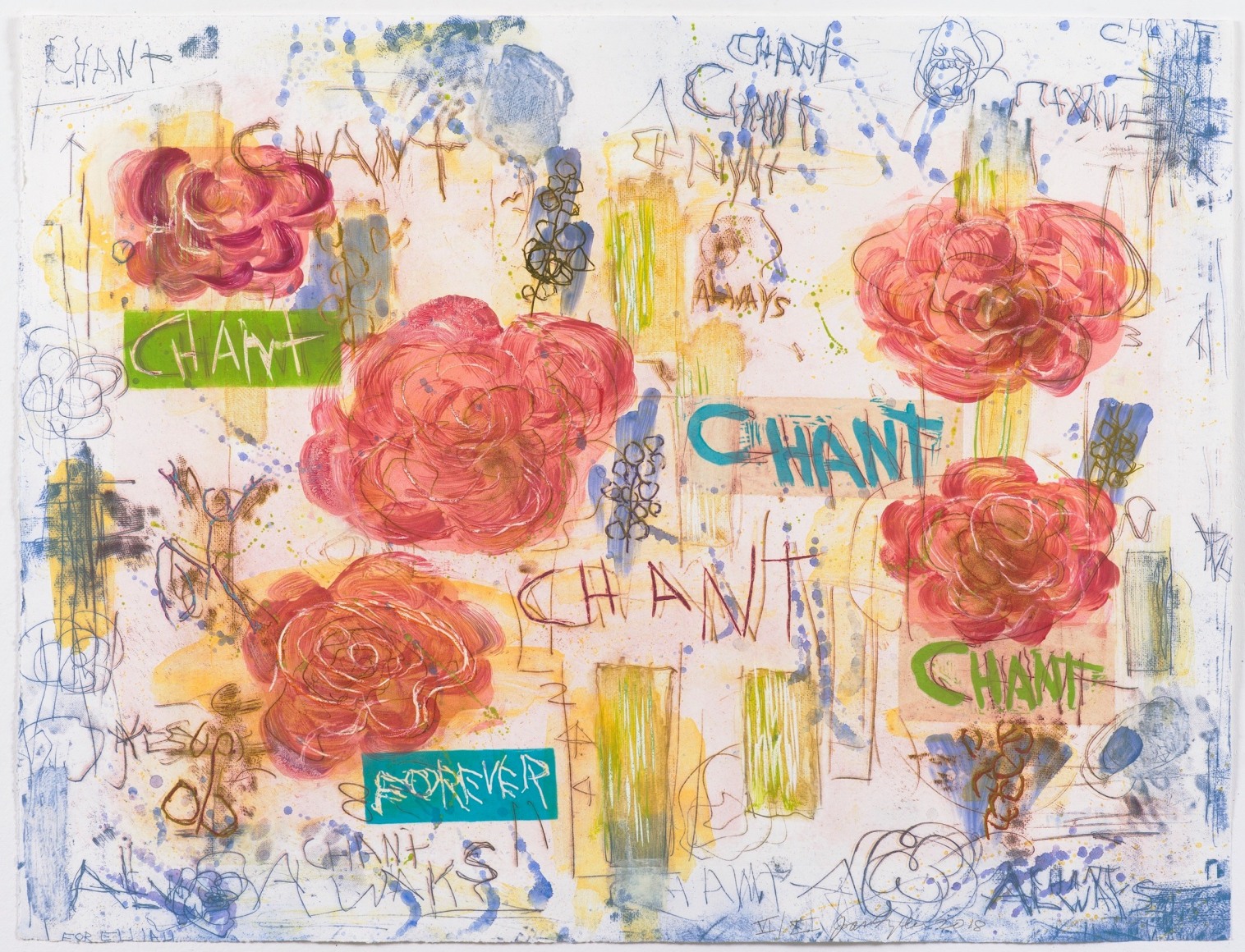 Chant/Forever, 2018, lithograph, etching, and woodcut, 32 1/2 by 42 1/2 inches, AP I/II variable monoprint