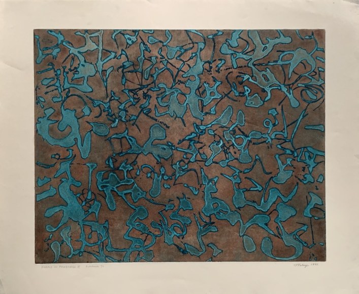 Anders Wahlstedt Fine Art is pleased to announce Unicum, an exhibition featuring eleven works, seven artists, and five approaches to print-making. The show unites skilled print-makers - Mark Tobey, Frank Stella, Jim Dine, Elizabeth Murray, John Zurier, Kenny Scharf, and James Brown - to highlight the category of unique prints. Monotypes, trial proofs, and lithographs with hand-coloring are just three of the techniques included in the exhibition.