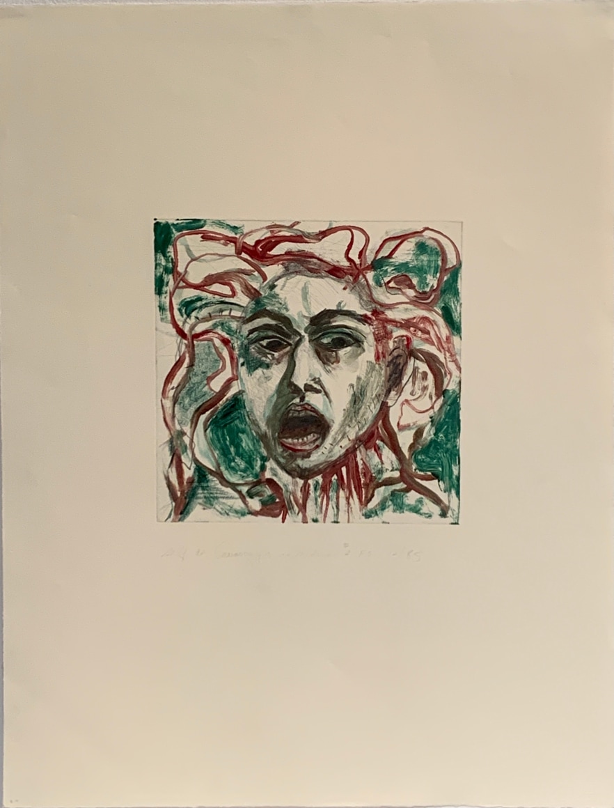 Etching with aquatint, soft and hardground with drypoint in colors on Buff Arches paper