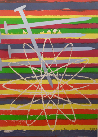 These artists created works on paper with the use of many different mediums to achieve their unique creative goal including, graphite drawing, etching, oil paint, collage, crayon, lithography, and watercolor. In this exhibit we explore the use of these different mediums, styles and concepts. For example the mixed media work on paper, by widely admired artist Pat Steir, whose simple drawing resembles a worksheet, showcasing the building blocks of art, using grids, color, text, and scribbles. And Budd Hopkins who used paper collage as an artistic technique and a philosophical, aesthetic means of unifying a disjointed and fragmented world.